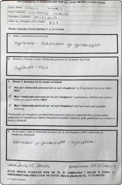 Datganiad / Declarations